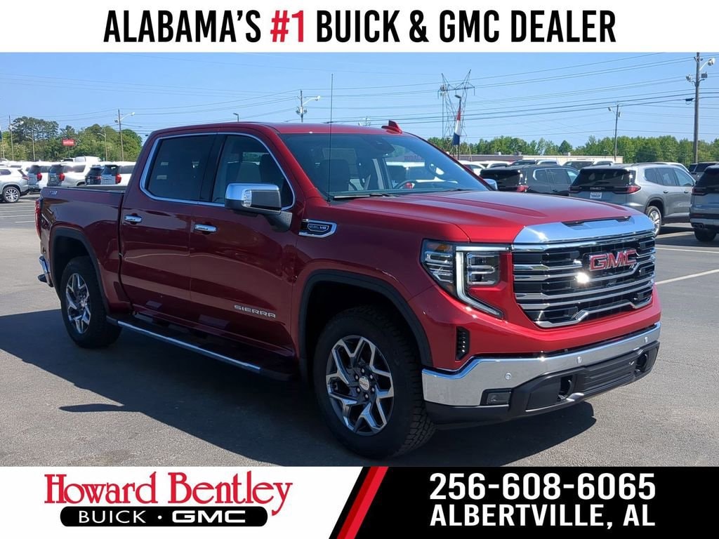Volcanic Red Tintcoat 2026 GMC Sierra 1500 SLT 4WD 10-Speed Automatic EcoTec3 5.3L V8 BLUETOOTH / MP3, SERVICE RECORDS AVAILABLE, AUDIO PACKAGE, POWER PACKAGE, 10-Speed Automatic, 4WD, Jet Black Leather.