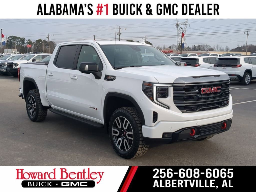 Howard Bentley Buick GMC is pumped up to offer this outstanding-looking 2023 GMC Sierra 1500 AT4 in Summit White. Beautifully equipped with: AT4 Preferred Package (Adaptive Cruise Control, Power Sliding Rear Window w/Rear Defogger, and Universal Home Remote), AT4 Premium Package (Off-Road High Clearance Step (LPO)), Preferred Equipment Group 4SB (120-Volt Bed Mounted Power Outlet, 120-Volt Instrument Panel Power Outlet, 2 Charge/Data USB Ports Inside Center Console, 2 Type-C Charge-Only Rear USB Ports, 2 USB Ports, 220 Amp Alternator, Auto-Locking Rear Differential, Black Chrome Header & Grille Insert Bars, Color-Keyed Carpeting Floor Covering, Compass, Deep-Tinted Glass, Electric Rear-Window Defogger, Electrical Steering Column Lock, Floor-Mounted Center Console, Front Prem Floor Liners w/Removable Carpet Insert, Front Rainsensing Wipers, GMC Connected Access Capable, HD Surround Vision, Heated 2nd Row Outboard Seats, Heated Driver & Front Outboard Passenger Seating, Heavy-Duty Air Filter, Hill Descent Control, Hitch Guidance w/Hitch View, In-Vehicle Trailering App, Integrated Trailer Brake Controller, Keyless Open & Start, LED Cargo Area Lighting, OnStar & GMC Connected Services Capable, Perimeter Lighting, Power Door Locks, Power Front Passenger Windows w/Express Up/Down, Power Front Windows w/Driver Express Up/Down, Power Rake & Telescoping Steering Column, Power Rear Windows w/Express Down, Premium Bose 7-Speaker Sound System, Push Button Start, Rear Cross Traffic Braking, Rear Pedestrian Detection, Rear Prem Floor Liners w/Removable Carpet Insert, Rear Wheelhouse Liners, Red Recovery Hooks, Remote Vehicle Starter System, SiriusXM w/360L, Spray-On Pickup Bed Liner w/AT4 Logo, Steering Wheel Audio Controls, Theft Deterrent System (Unauthorized Entry), Trailer Camera Provisions, Trailer Side Blind Zone Alert, Ultrasonic Front & Rear Park Assist, Ventilated Driver & Front Passenger Seats, Wi-Fi Hotspot Capable, Wireless Charging, and Wireless Phone Projection), Technology Package (Bed View Camera, Multicolor 15 Diagonal Head-Up Display, and Rear Camera Mirror), Trailering Package (Hitch Guidance), 10-Speed Automatic, 4WD, Jet Black With Kalahari Accents Leather, 10-Way Power Driver Seat Adjuster w/Lumbar, 10-Way Power Passenger Seat Adjuster w/Lumbar, 170 Amp Alternator, 18 x 8.5 Machined Aluminum Wheels, 3.23 Rear Axle Ratio, 4-Wheel Disc Brakes, 7 Speakers, ABS brakes, Air Conditioning, Alloy wheels, AM/FM radio, Apple CarPlay/Android Auto, Auto High-beam Headlights, Auto-dimming door mirrors, Auto-dimming Rear-View mirror, Automatic Emergency Braking, Automatic temperature control, Auxiliary External Transmission Oil Cooler, Block heater, Brake assist, Buckle to Drive, Bumpers: body-color, Delay-off headlights, Driver door bin, Driver Memory, Driver vanity mirror, Dual front impact airbags, Dual front side impact airbags, Electronic Stability Control, Emergency communication system: OnStar and GMC connected services capable, Engine Block Heater, External Engine Oil Cooling, Following Distance Indicator, Forward Collision Alert, Front anti-roll bar, Front Bucket Seats, Front Center Armrest, Front dual zone A/C, Front fog lights, Front License Plate Kit, Front Pedestrian Braking, Front reading lights, Front wheel independent suspension, Fully automatic headlights, Heated door mirrors, Heated front seats, Heated rear seats, Heated steering wheel, Illuminated entry, IntelliBeam Automatic High Beam On/Off, Lane Keep Assist w/Lane Departure Warning, Low tire pressure warning, Memory seat, Navigation System, Not Equipped w/Steering Column Lock, Occupant sensing airbag, Off-Road Suspension, Outside temperature display, Overhead airbag, Overhead console, Panic alarm, Passenger door bin, Passenger vanity mirror, Perforated Front Leather Seat Trim, Power door mirrors, Power driver seat, Power passenger seat,