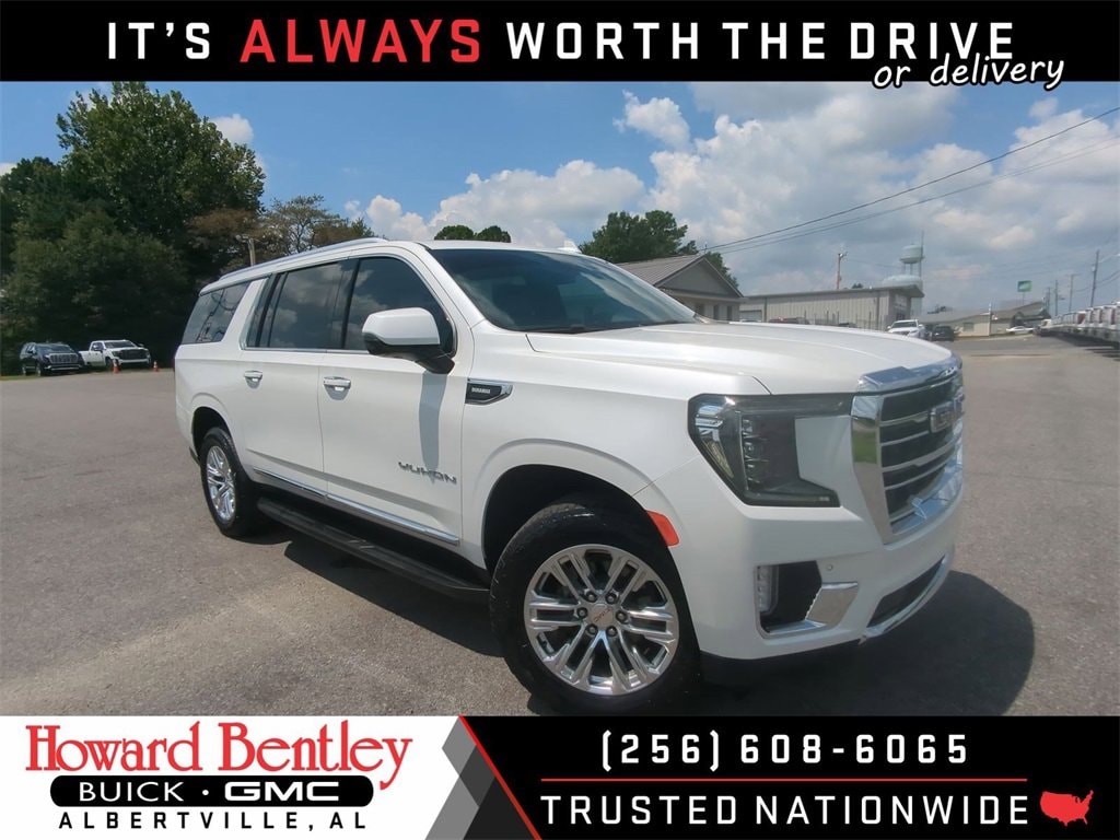 Howard Bentley Buick GMC is proud to offer this outstanding 2023 GMC Yukon XL SLT in White Frost Tricoat. Beautifully equipped with: Max Trailering Package, Preferred Equipment Group 4SA (2 Presets For Power Driver Seat, Bose 9-Speaker Stereo Audio System Feature, Bright Chrome Bodyside Moldings, Bright Front & Rear Door Sill Plates, Chrome Door Handles w/Body-Color Strip, Hands-Free Power Programmable Rear Liftgate, Heated & Ventilated Driver & Front Passenger Seats, Heated Driver & Front Passenger Seats, Inside Rear-View Auto-Dimming Mirror, Safety Alert Seat, Universal Home Remote, and Wireless Charging), SLT Luxury Package (2 Presets For Outside Rearview Mirrors, 3rd Row 60/40 Power-Folding Split-Bench Seat, Adaptive Cruise Control, Enhanced Automatic Emergency Braking, HD Surround Vision, Heated 2nd Row Outboard Position Seats, Heated Steering Wheel, Outside Heated Power-Adjustable Mirrors, Power Release 2nd Row 60/40 Split-Folding Bench Seat, Power Tilt & Telescopic Steering Column, and Rear Pedestrian Alert), SLT Premium Package (Dual-Pane Panoramic Power Sunroof), 4WD, 1.5 kW Heater/Defrost Air System, 250 Amps Alternator, 3.23 Rear Axle Ratio, 3rd row seats: split-bench, 4-Wheel Disc Brakes, 850 Cold-Cranking Amps Battery, 9 Speakers, ABS brakes, Air Conditioning, Alloy wheels, AM/FM radio: SiriusXM with 360L, AM/FM Stereo, Apple CarPlay/Android Auto, Auto High-beam Headlights, Auto-dimming Rear-View mirror, Automatic Emergency Braking, Automatic temperature control, Bodyside moldings, Brake assist, Bumpers: body-color, Compass, Delay-off headlights, Diesel B20 Fuel, Driver door bin, Driver vanity mirror, Dual front impact airbags, Dual front side impact airbags, Electronic Stability Control, Emergency communication system: OnStar and GMC connected services capable, Engine Block Heater, Following Distance Indicator, Forward Collision Alert, Four wheel independent suspension, Front & Rear Park Assist, Front anti-roll bar, Front Bucket Seats, Front Center Armrest, Front dual zone A/C, Front fog lights, Front Pedestrian Braking, Front reading lights, Fully automatic headlights, Garage door transmitter, Heated door mirrors, Heated front seats, Hitch Guidance w/Hitch View, Illuminated entry, Integrated Trailer Brake Controller, IntelliBeam Automatic High Beam On/Off, Lane Change Alert w/Side Blind Zone Alert, Lane Keep Assist w/Lane Departure Warning, Low tire pressure warning, Memory seat, Navigation System, Not Equipped w/4-Way Driver & Fr Pass Pwr Lumbar, Occupant sensing airbag, Outside temperature display, Overhead airbag, Overhead console, Panic alarm, Passenger door bin, Passenger vanity mirror, Perforated Leather-Appointed Seating, Power door mirrors, Power driver seat, Power Liftgate, Power passenger seat, Power Release 2nd Row Bucket Seats, Power steering, Power windows, Premium Smooth Ride Suspension, Rain sensing wipers, Rear air conditioning, Rear anti-roll bar, Rear Cross Traffic Alert, Rear reading lights, Rear seat center armrest, Rear window defroster, Rear window wiper, Remote keyless entry, Roof rack: rails only, Security system, SiriusXM w/360L, Smart Trailer Integration Indicator, Speed control, Speed-sensing steering, Split folding rear seat, Spoiler, Steering wheel mounted audio controls, Tachometer, Telescoping steering wheel, Tilt steering wheel, Traction control, Trailer Side Blind Zone Alert, Trip computer, Upper & Lower Active Aero Shutters, Variably intermittent wipers, Ventilated front seats, Voltmeter, and Wheels: 20 x 9 6-Spoke Polished Aluminum!