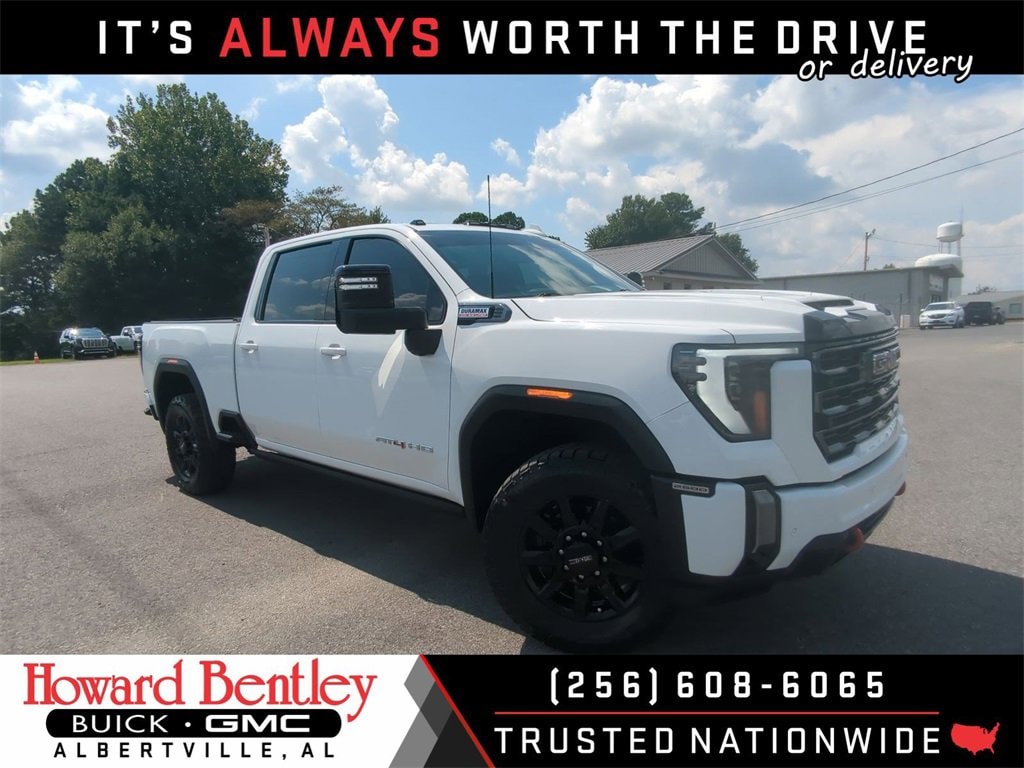 Howard Bentley Buick GMC is honored to offer this gorgeous 2024 GMC Sierra 2500HD AT4 in Summit White. Beautifully equipped with: AT4 Preferred Package (Adaptive Cruise Control, LED Smoked Amber Roof Marker Lamps, Power Sliding Rear Window w/Defogger, and Universal Home Remote), AT4 Premium Plus Package (Off-Road High Clearance Step (LPO) and Power Sunroof), Gooseneck/5th Wheel Prep Package, Preferred Equipment Group 4SB (120-Volt Bed Mounted Power Outlet, 120-Volt Instrument Panel Power Outlet, 2 Charge-Only Rear USB Ports, 2 Charge/Data USB Ports Inside Center Console, 2 USB Ports, 2-Speed Active Transfer Case, Bed View Camera w/2 Trailer Camera Provisions, Bose Premium 7-Speaker Sound System, Deep-Tinted Glass, Electric Rear-Window Defogger, Floor-Mounted Center Console, Front Prem Floor Liners w/Removable Carpet Insert, Front Rain-Sensing Wipers, Gloss Black Header Grille & Grille Insert Bars, GMC Connected Access Capable, HD Surround Vision, Heated 2nd Row Outboard Seats, Heated Driver & Front Outboard Passenger Seats, Integrated Trailer Brake Controller, Keyless Open & Start, LED Cargo Area Lighting, Manual Tilt-Wheel/Telescoping Steering Column, OnStar & GMC Connected Services Capable, Power Front Passenger Windows w/Express Up/Down, Push Button Start, Rear Cross Traffic Alert, Rear Prem Floor Liners w/Removable Carpet Insert, Rear Wheelhouse Liners, Remote Vehicle Starter System, Safety Alert Seat, SiriusXM w/360L, Spray-On Bedliner w/AT4 Logo, Steering Wheel Audio Controls, Trailer Cam Provisions & Trailer Viewing Software, Trailer Side Blind Zone Alert, Ultrasonic Front & Rear Park Assist, Unauthorized Entry Theft-Deterrent System, Ventilated Driver & Front Passenger Seats, Wireless Charging, and Wireless Phone Projection), Technology Package (Inside Rearview Auto-Dimming Rear Camera Mirror and Multicolor 15 Diagonal Head-Up Display), X31 Off-Road Package (Hill Descent Control), 10-Speed Automatic, 4WD, Jet Black With Kalahari Accents Leather, 10-Way Power Driver Seat Adjuster w/Lumbar, 10-Way Power Passenger Seat Adjuster w/Lumbar, 220-Amp Alternator, 4-Wheel Disc Brakes, 7 Speakers, ABS brakes, Air Conditioning, Alloy wheels, AM/FM radio: SiriusXM with 360L, Apple CarPlay/Android Auto, Auto High-beam Headlights, Auto-dimming door mirrors, Auto-dimming Rear-View mirror, Automatic Emergency Braking, Automatic temperature control, Brake assist, Buckle to Drive, Bumpers: body-color, Compass, Delay-off headlights, Driver door bin, Driver Memory, Driver vanity mirror, Dual front impact airbags, Dual front side impact airbags, Electronic Stability Control, Engine Block Heater, Exhaust Brake, Following Distance Indicator, Forward Collision Alert, Front anti-roll bar, Front Bucket Seats, Front Center Armrest, Front dual zone A/C, Front fog lights, Front Pedestrian Braking, Front reading lights, Front wheel independent suspension, Fully automatic headlights, Heated door mirrors, Heated front seats, Heated rear seats, Heated steering wheel, Heavy-Duty 80 Amp Battery, Hitch Guidance w/Hitch View, Illuminated entry, In-Vehicle Trailering System App, IntelliBeam Automatic High Beam On/Off, Lane Departure Warning System, Low tire pressure warning, Memory seat, Occupant sensing airbag, Off-Road Suspension, Outside temperature display, Overhead airbag, Overhead console, Panic alarm, Passenger door bin, Passenger vanity mirror, Perforated Leather-Appointed Front Seat Trim, Pickup Box, Power door mirrors, Power driver seat, Power passenger seat, Power steering, Power windows, Power-Retractable Black Assist Steps, Premium audio system: Premium GMC Infotainment System, Radio: AM/FM w/Premium GMC Infotainment System, Rain sensing wipers, Rear reading lights, Rear seat center armrest, Rear step bumper, Rear window defroster, Remote keyless entry, Security system, Speed