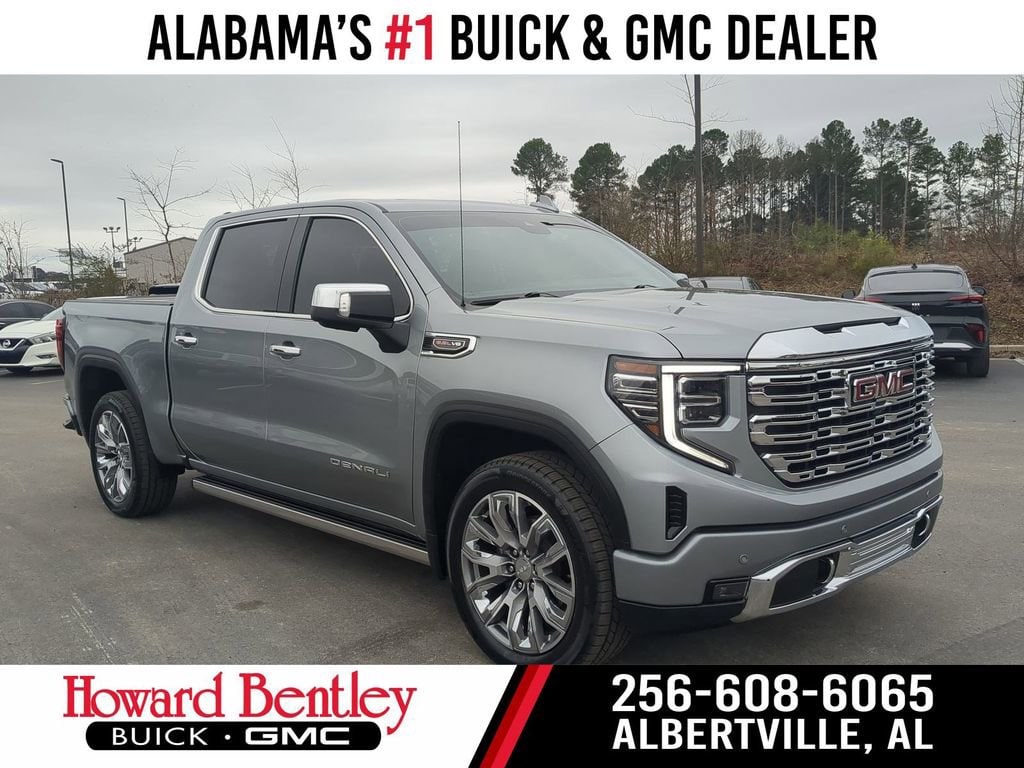 Howard Bentley Buick GMC is honored to offer this terrific 2025 GMC Sierra 1500 Denali in Sterling Metallic. Beautifully equipped with: Denali Reserve Package (GMC MultiPro Power Steps, Power Sunroof, Wheel Locks (Set of 4) (LPO), and Wheels: 22 x 9 Painted Aluminum), Preferred Equipment Group 5SA (120-Volt Bed Mounted Power Outlet, 120-Volt Interior Power Outlet, 170 Amp Alternator, 2 Charge/Data USB Ports Inside Center Console, 2 Type-C Charge-Only Rear USB Ports, 2 USB Ports, Auto-Locking Rear Differential, Auxiliary External Transmission Oil Cooler, Bed View Camera, Chrome Header w/Signature Denali Chrome Grille, Chrome Recovery Hooks, Chrome Wheel To Wheel Assist Steps, Color-Keyed Carpeting Floor Covering, Deep-Tinted Glass, Electric Rear-Window Defogger, Floor-Mounted Center Console, Front Rain-Sensing Wipers, HD Surround Vision, Heated 2nd Row Outboard Seats, Heated Driver & Front Outboard Passenger Seating, Heavy-Duty Air Filter, Hill Descent Control, Hitch View, In-Vehicle Trailering System App, Integrated Trailer Brake Controller, Keyless Open & Start, LED Cargo Area Lighting, OnStar Services Capable, Perimeter Lighting, Power Door Locks, Power Front Passenger Windows w/Express Up/Down, Power Front Windows w/Driver Express Up/Down, Power Rake & Telescoping Steering Column, Power Rear Windows w/Express Down, Power Sliding Rear Window w/Rear Defogger, Premium Bose 7-Speaker Sound System, Push Button Start, Rear Cross Traffic Braking, Rear Pedestrian Detection, Rear Wheelhouse Liners, Remote Vehicle Starter System, SiriusXM w/360L Trial Subscription, Spray-On Pickup Bedliner w/GMC Logo, Steering Wheel Audio Controls, Theft Deterrent System (Unauthorized Entry), Trailer Camera Provisions, Trailer Side Blind Zone Alert, Ultrasonic Front & Rear Park Assist, Universal Home Remote, Ventilated Driver & Front Passenger Seats, Wi-Fi Hotspot Capable, and Wireless Charging), Technology Package (Multicolor 15 Diagonal Head-Up Display and Rear Camera Mirror), Trailering Package (Hitch Guidance), 10-Speed Automatic, 4WD, Jet Black Leather, 12-Way Power Driver Seat Adjuster w/Lumbar, 12-Way Power Passenger Seat Adjuster w/Lumbar, 3.23 Rear Axle Ratio, 4-Wheel Disc Brakes, 7 Speakers, ABS brakes, Adaptive suspension, Air Conditioning, Alloy wheels, AM/FM radio: SiriusXM with 360L, Apple CarPlay/Android Auto, Auto High-beam Headlights, Auto-dimming door mirrors, Auto-dimming Rear-View mirror, Automatic temperature control, Brake assist, Buckle to Drive, Bumpers: body-color, Compass, Delay-off headlights, Denali Premium Suspension w/Adaptive Ride Control, Driver door bin, Driver Memory, Driver vanity mirror, Dual Active Exhaust, Dual front impact airbags, Dual front side impact airbags, Electronic Stability Control, Emergency communication system: OnStar, Enhanced Automatic Emergency Braking, Following Distance Indicator, Forge Perforated Leather Seat Trim, Forward Collision Alert, Front anti-roll bar, Front Bucket Seats, Front Center Armrest, Front dual zone A/C, Front fog lights, Front Pedestrian Braking, Front Prem Floor Liners w/Removable Carpet Insert, Front reading lights, Front wheel independent suspension, Fully automatic headlights, Garage door transmitter, Genuine wood console insert, Genuine wood dashboard insert, Genuine wood door panel insert, Heated door mirrors, Heated front seats, Heated rear seats, Heated steering wheel, Illuminated entry, IntelliBeam Automatic High Beam On/Off, Lane Keep Assist w/Lane Departure Warning, Low tire pressure warning, Memory seat, Navigation System, Occupant sensing airbag, Outside temperature display, Overhead airbag, Overhead console, Panic alarm, Passenger door bin, Passenger vanity mirror, Power door mirrors, Power driver seat, Power passenger seat, Power steering, Power windows, Radio data system, Radio: Premium GMC Infotainment Audio System, Rain sensing wiper