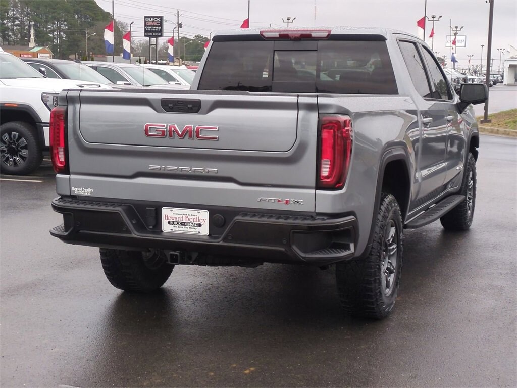 Howard Bentley Buick GMC is pleased to offer this stunning-looking 2025 GMC Sierra 1500 AT4X in Sterling Metallic. Beautifully equipped with: Preferred Equipment Group 4SG (120-Volt Bed Mounted Power Outlet, 120-Volt Interior Power Outlet, 2 Charge/Data USB Ports Inside Center Console, 2 Type-C Charge-Only Rear USB Ports, 2 USB Ports, Bed View Camera, Bose Premium Series w/12-Speaker System, Color-Keyed Carpeting Floor Covering, Deep-Tinted Glass, Driver-Selectable Full-Locking Front Differential, Driver-Selectable Full-Locking Rear Differential, Electric Rear-Window Defogger, Floor-Mounted Center Console, Front Prem Floor Liners w/Removable Carpet Insert, Front Rain-Sensing Wipers, Gloss Black Header w/Drk Nickel Grille Insert Bars, HD Surround Vision, Heated 2nd Row Outboard Seats, Heated Driver & Front Outboard Passenger Seating, Heavy-Duty Air Filter, Hill Descent Control, Hitch View, In-Vehicle Trailering System App, Integrated Trailer Brake Controller, Keyless Open & Start, LED Cargo Area Lighting, Multicolor 15 Diagonal Head-Up Display, MultiPro Tailgate Audio System by Kicker (LPO), OnStar Services Capable, Perimeter Lighting, Power Door Locks, Power Front Passenger Windows w/Express Up/Down, Power Front Windows w/Driver Express Up/Down, Power Rake & Telescoping Steering Column, Power Rear Windows w/Express Down, Power Sliding Rear Window w/Rear Defogger, Power Sunroof, Push Button Start, Rear Cross Traffic Braking, Rear Pedestrian Detection, Rear Prem Floor Liners w/Removable Carpet Insert, Rear Wheelhouse Liners, Remote Vehicle Starter System, SiriusXM w/360L Trial Subscription, Spray-On Pickup Bedliner w/GMC Logo, Steering Wheel Audio Controls, Theft Deterrent System (Unauthorized Entry), Trailer Camera Provisions, Trailer Side Blind Zone Alert, Trailer Tire Pressure Monitor System, Ultrasonic Front & Rear Park Assist, Universal Home Remote, Ventilated Driver & Front Passenger Seats, Wi-Fi Hotspot Capable, and Wireless Charging), Trailering Package (Hitch Guidance), 10-Speed Automatic, 4WD, Obsidian Rush Leather, 12 Speakers, 16-Way Power Driver Seat Adjuster w/Lumbar, 16-Way Power Passenger Seat Adjuster w/Lumbar, 220 Amp Alternator, 3.23 Rear Axle Ratio, 4-Wheel Disc Brakes, ABS brakes, Air Conditioning, Alloy wheels, AM/FM radio: SiriusXM with 360L, Apple CarPlay/Android Auto, Auto High-beam Headlights, Auto-dimming door mirrors, Auto-dimming Rear-View mirror, Automatic Emergency Braking, Automatic temperature control, Block heater, Brake assist, Buckle to Drive, Compass, Delay-off headlights, Driver door bin, Driver Memory, Driver vanity mirror, Dual front impact airbags, Dual front side impact airbags, Electronic Stability Control, Emergency communication system: OnStar, Engine Block Heater, Following Distance Indicator, Forward Collision Alert, Front anti-roll bar, Front Bucket Seats, Front Center Armrest, Front dual zone A/C, Front fog lights, Front License Plate Kit, Front Pedestrian Braking, Front reading lights, Front wheel independent suspension, Full Grain Leather Seat Trim, Fully automatic headlights, Garage door transmitter, Genuine wood dashboard insert, Genuine wood door panel insert, Heads-Up Display, Heated door mirrors, Heated front seats, Heated rear seats, Heated steering wheel, Illuminated entry, IntelliBeam Automatic High Beam On/Off, Lane Keep Assist w/Lane Departure Warning, Leather steering wheel, Low tire pressure warning, Memory seat, Navigation System, Occupant sensing airbag, Off-Road High Clearance Step (LPO), Off-Road Suspension, Outside temperature display, Overhead airbag, Overhead console, Panic alarm, Passenger door bin, Passenger vanity mirror, Power door mirrors, Power driver seat, Power moonroof, Power passenger seat, Power steering, Power windows, Radio data system, Radio: Premium GMC Infotainment Audi